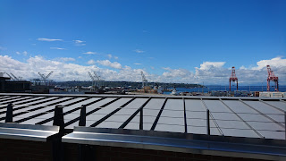 My family and I got a rare opportunity to take a "behind-the-scenes" tour of Seattle's own Safeco Field. We gathered in the gift shop, and walked out on the upper level: